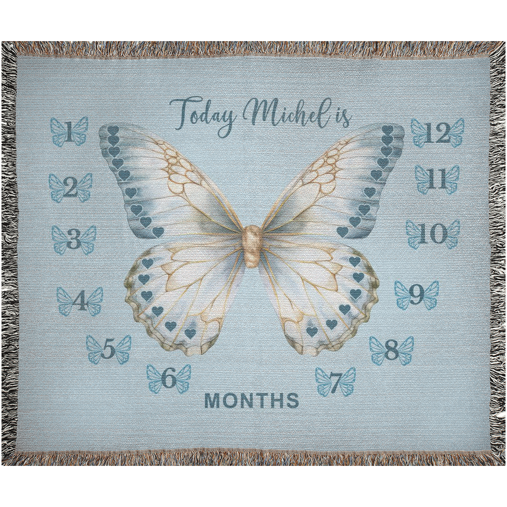 Capture every milestone in timeless style with our personalized butterfly milestone blanket, now crafted in 100% cotton woven fabric. Unlike printed or synthetic options, this woven design is made to last—soft, breathable, and naturally gentle on your baby’s skin. Each detail is woven directly into the fabric, giving the blanket a rich texture and heirloom quality that turns every monthly photo into a work of art. Beyond the milestone moments, it’s a keepsake you’ll treasure for years to come.
