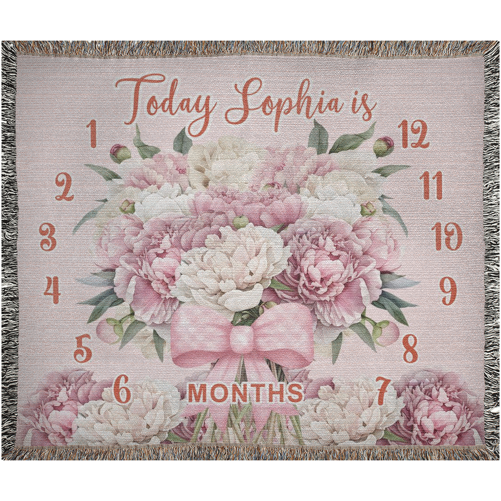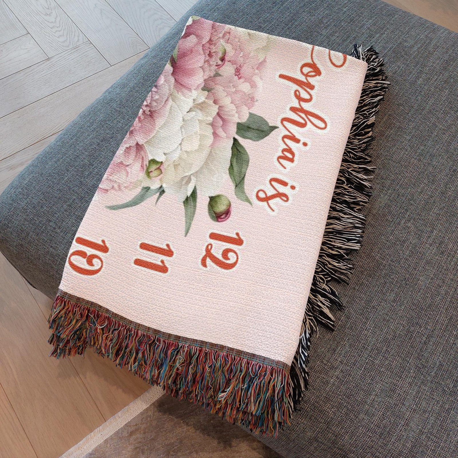Personalized 100% Cotton Woven Baby Milestone Blanket – Pretty In Pink Blossom Design