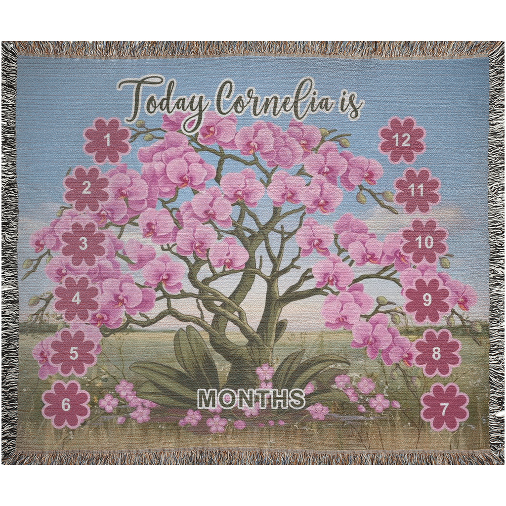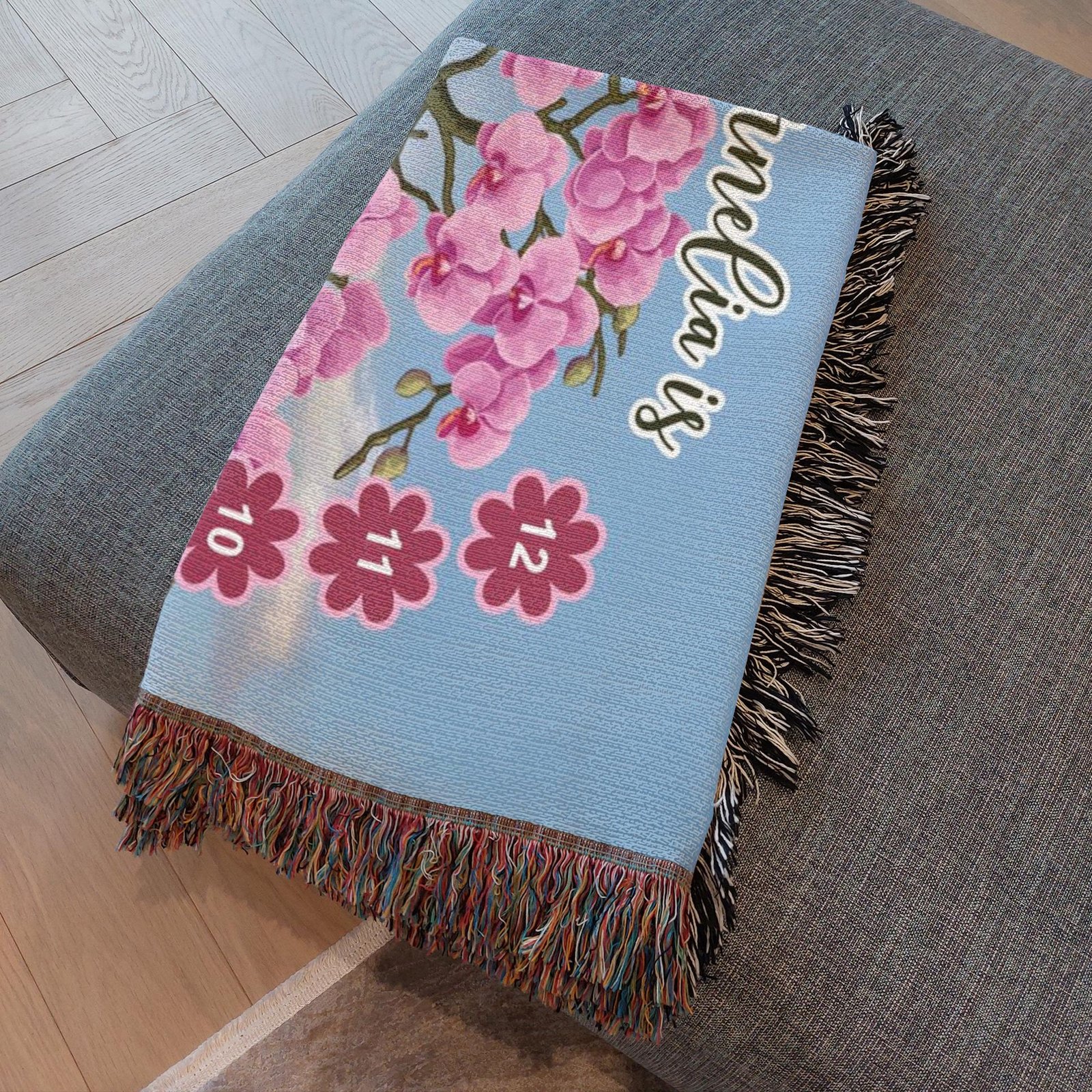 Personalized 100% Cotton Woven Baby Milestone Blanket – Pretty In Pink Blossom Design