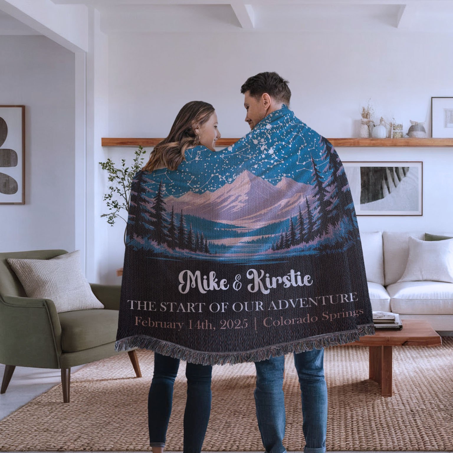 Personalized 100% Cotton Woven Blanket- Adventure Together
