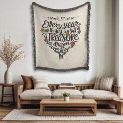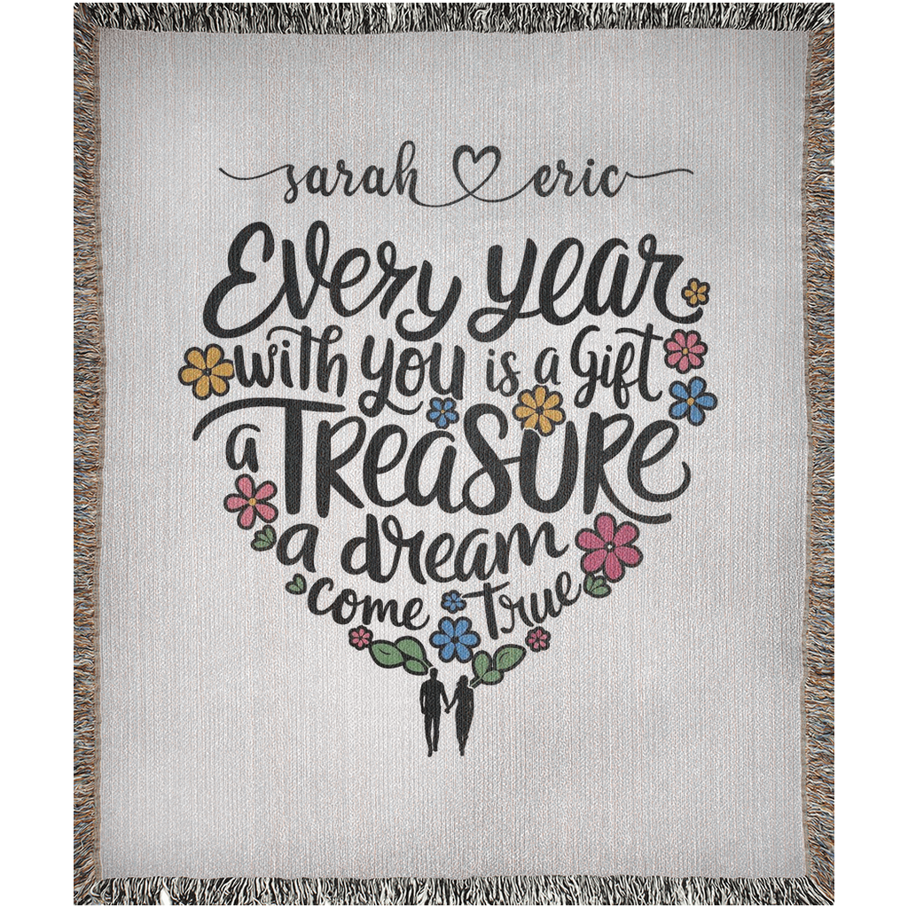 Personalized 100% Cotton Woven Blanket (Every Year With You Is A Gift A Treasure A Dream Come True)