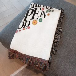 Wrap yourself in warmth and style with our personalized woven blanket, crafted from soft cotton yarn and finished with vibrant fringe for a cozy, elegant touch. Each blanket is made with a thick weave, displaying your chosen design in stunning detail.