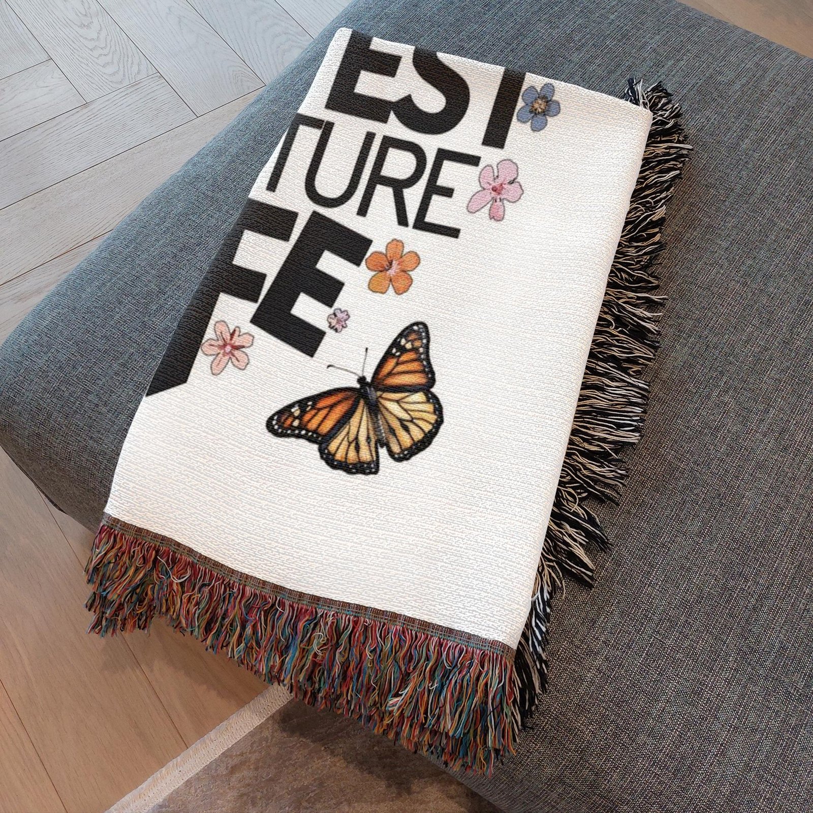 Wrap yourself in warmth and style with our personalized woven blanket, crafted from soft cotton yarn and finished with vibrant fringe for a cozy, elegant touch. Each blanket is made with a thick weave, displaying your chosen design in stunning detail.