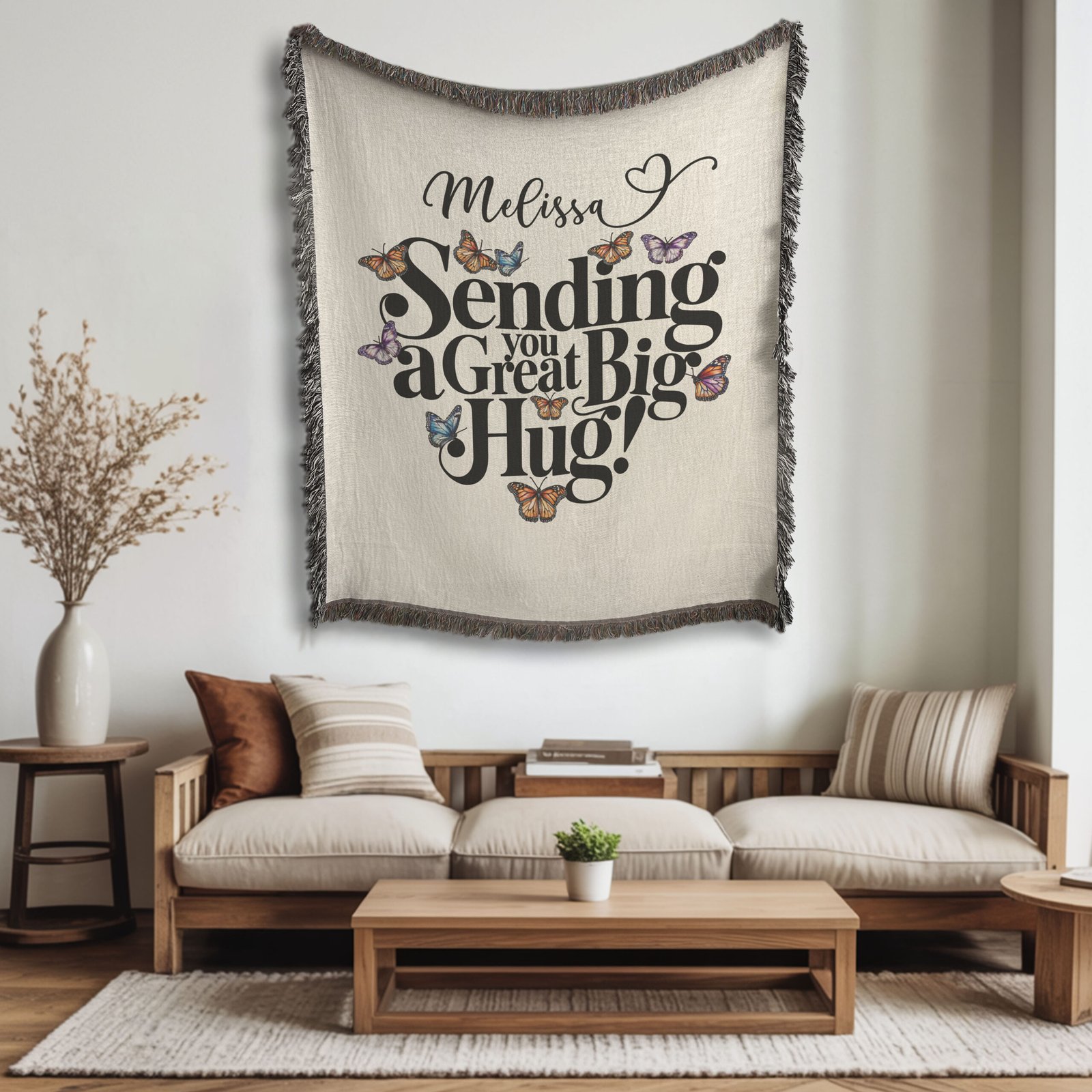Wrap yourself in warmth and style with our personalized woven blanket, crafted from soft cotton yarn and finished with vibrant fringe for a cozy, elegant touch. Each blanket is made with a thick weave, displaying your chosen design in stunning detail.