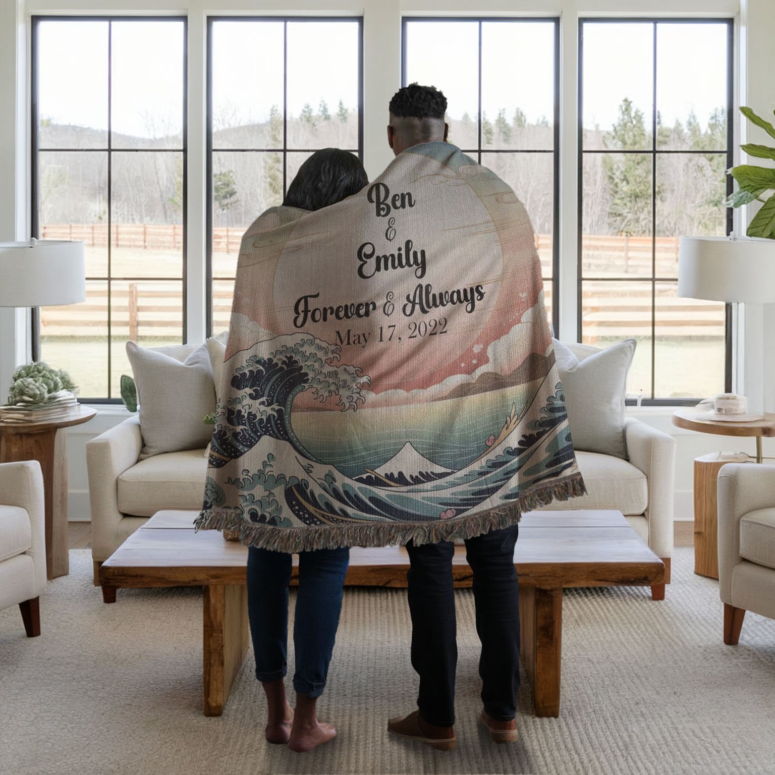 Personalized 100% Cotton Woven Blanket (Every Year With You Is A Gift A Treasure A Dream Come True)