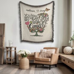 Personalized 100% Cotton Woven Blanket (You Make My Heart Sing My Soul Soar My Life Complete)