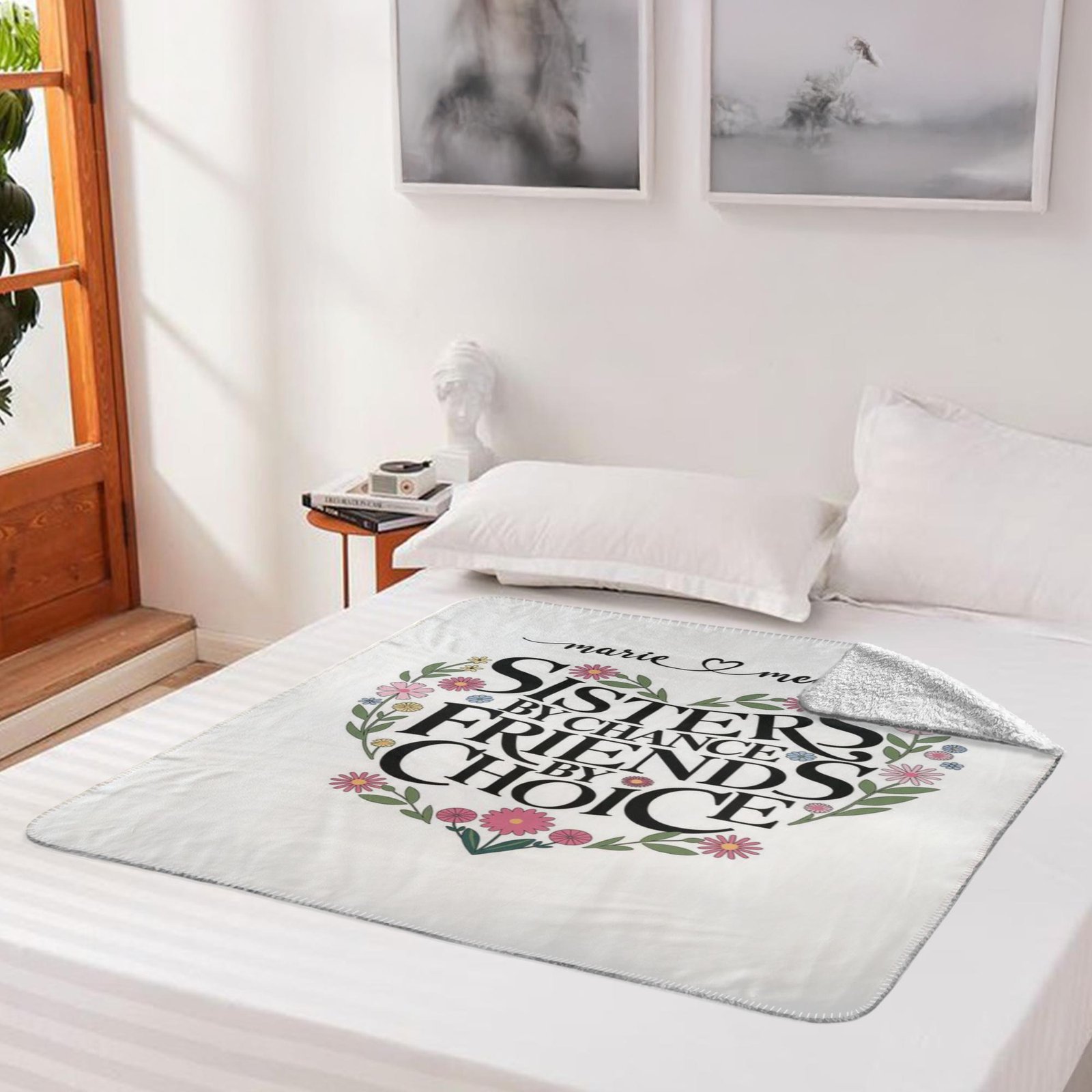 Wrap yourself in warmth and comfort with our cozy personalized ‘Sisters By Chance Friends By Choice’ Sherpa blanket. Soft, luxurious, and custom-designed just for you, it’s the perfect addition to your home or a thoughtful gift for someone special.